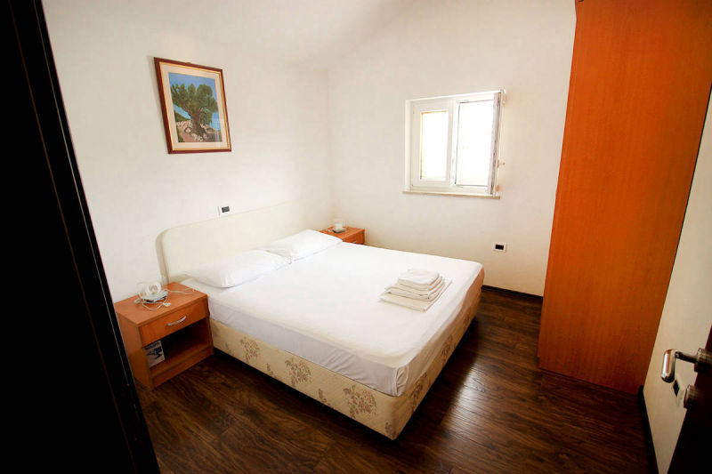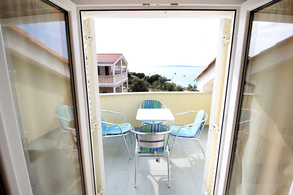 Apartment is equipped for up to 6 people. It has a bedroom with double bed, bedroom with two beds, kitchen with sofa for two persons, bathroom with toilet and balcony with sea view.